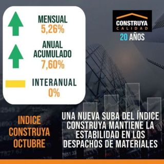 El Índice Construya (IC), que elabora el Grupo Construya desde junio del 2002 registró en octubre una suba mensual desestacionalizada de 5,26% con respecto a septiembre. Con esta suba los despachos igualaron respecto a los de octubre del año pasado. En tanto, el acumulado anual se ubicó un 7,6 % por encima del mismo periodo de 2021.