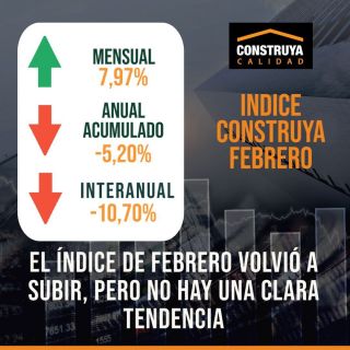 El Índice Construya (IC), que elabora el Grupo Construya desde junio del 2002 registró, en febrero una nueva suba desestacionalizada de 8 % con respecto a enero. Pero se mantuvo 10,70% por debajo del mismo mes de 2022 y en el acumulado del primer bimestre de 2023 la caída fue de 5,2%.