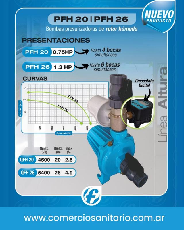 FLUVIAL suma a su línea las nuevas bombas presurizadoras PFH 20 y PFH 26, diseñadas para presurizar instalaciones directamente desde cisterna de manera eficiente y silenciosa.
