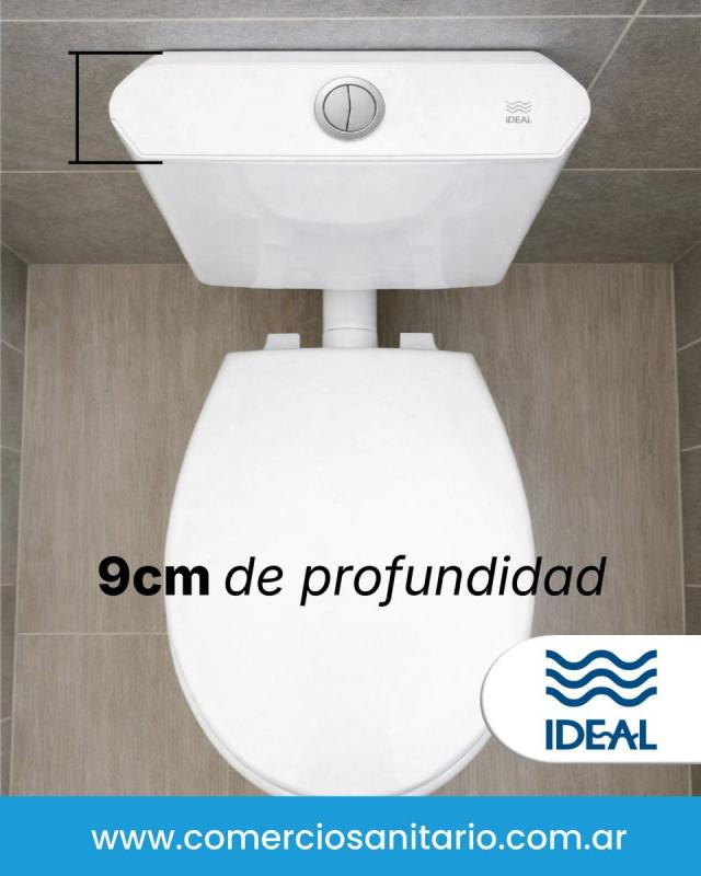 Con solo 9 cm de profundidad, esta solución se posiciona como una alternativa ideal para ambientes reducidos o proyectos donde no se desea —o no es posible— instalar un depósito de embutir. Su perfil ultradelgado permite ganar espacio visual y físico, logrando un baño más liviano, ordenado y moderno.