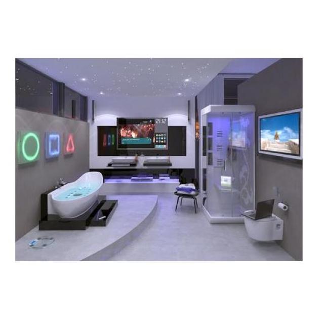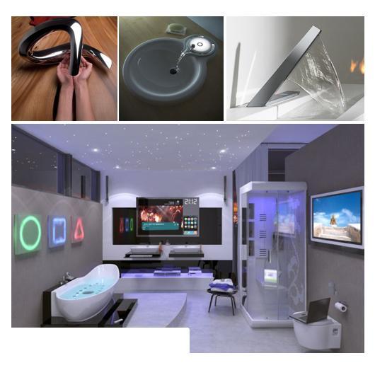 Los baños futuristas contienen todos los elementos digitales que podríamos imaginar. Como las nuevas generaciones están cada vez más identificadas con productos como son los MP3, las televisiones, los teléfonos o cualquier otro gadget novedoso, estos se integran en el baño sin que nada permanezca alterado.