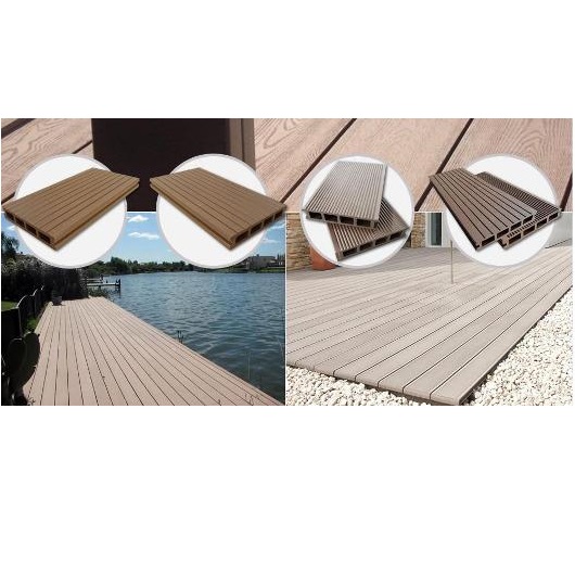 Tablas de PVC y Madera para Decks, que combinan compuestos de plásticos y madera; obteniendo un producto de alta gama, sin mantenimiento posterior, en diversas tonalidades.