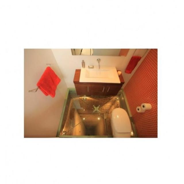 Es lindo imaginarse las caras de terror de los invitados que entraran al baño por primera vez y se encuentran caminando sobre un abismo de 15 pisos o se encuentran inmersos en un mundo de edificios.
