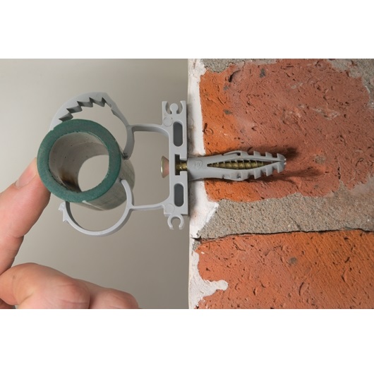 Presentamos la grampa CLAMPY, que en forma rápida, segura y prolija, sujeta todo tipo de caños, mangueras o incluso cables. Desarrollamos y patentamos una grampa versátil con características únicas. Es un sistema de fijación moderno, que le permite al profesional ahorrar tiempo en la colocación, obteniendo un mejor resultado.