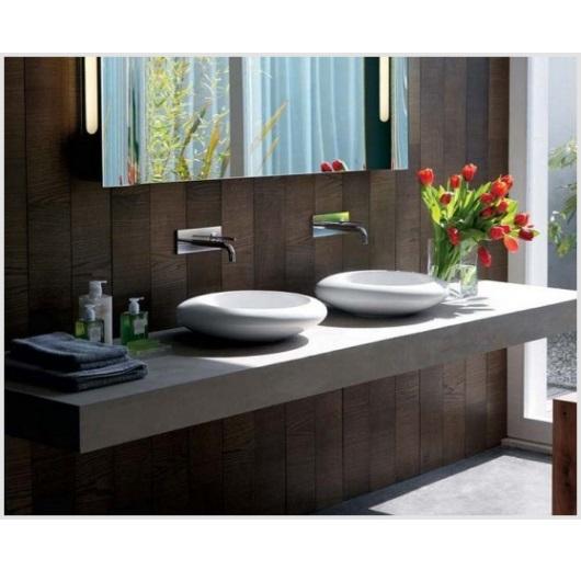 Hoy les presentamos cuatros fantásticos diseños de lavatorios modernos para un ambiente al que hoy en día se destina mucha energía y buenas ideas para su decoración de interiores. Todo sobre colores, formas y distribución, con las nuevas tendencias en lavatorios para baño.En primer lugar tenemos un bellísimo y exótico baño, con una distribución muy original y dimensiones amplias, así como también detalles en laja en marrón y gris, que perfectamente combinan con la madera y los pisos de porcelanato en color crema. En este caso se utiliza una mesada de apoyo en madera con una bacha color negra, de forma ovalada, moderna y muy original. Tenemos un espejo muy sencillo y una serie de muebles de puerta ciega, en melamina negra con dibujos de flores.En segundo lugar tenemos un lavatorio muy delicado, sencillo, con el material por excelencia a la hora de decorar baños modernos, la madera que ha vuelto para quedarse. Se trata de un mueble con terminaciones rectas, con un espejo simple, un estante para toallas o accesorios de toilette y una bacha de apoyo rectangular en color marrón.Otra tendencia que crece en estos momentos, es el uso de dos bachas para los baños modernos, especialmente para los baños principales. Una forma de solucionar los conflictos a la hora de esperar por el baño, al igual que la división en compartimientos con el inodoro por un lado, la ducha por el otro y un sector para el lavatorio que suele tener esta opción de dos lavatorios sobre una misma mesada, en este caso de madera y con un gran espejo sobre la pared.Finalmente tenemos un diseño elegante de lavatorio donde podemos ver una bellísima mesada de mármol, detalles en laja sobre la pared, dos lavatorios generados a partir de la misma mesada de mármol, una forma también muy innovadora y moderna para el diseño de lavatorios y por debajo, en una estructura separada, un pequeño mueble de puertas ciegas donde se pueden disponer toallas, accesorios de toilette y adornos, siendo la decoración con flores secas y naturales, la principal elección.