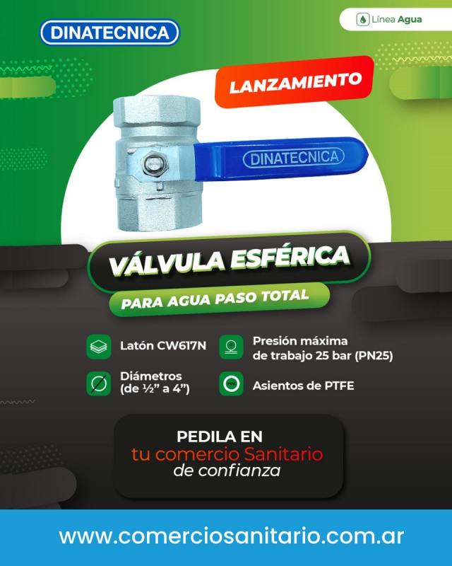 Dinatecnica amplía su catálogo con la Válvula Esférica para Agua Paso Total, una solución confiable y versátil para todo tipo de instalaciones.